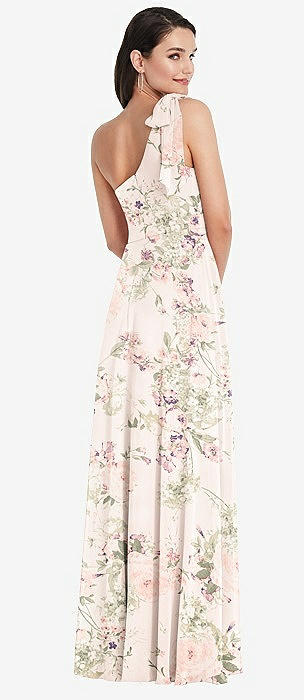 Draped One-Shoulder Maxi Dress with Scarf Bow in blush garden