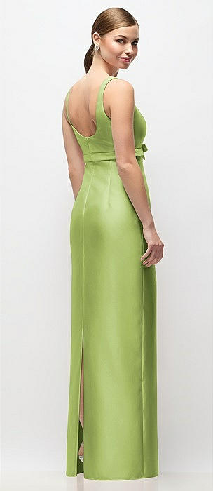 Scoop Neck Satin Column Maxi Dress with Bow at Empire Waist in mojito