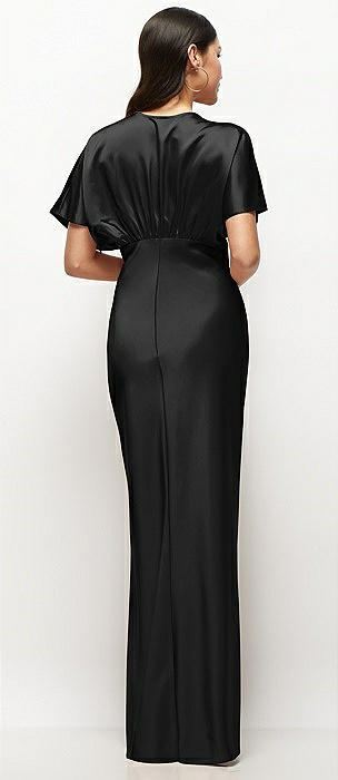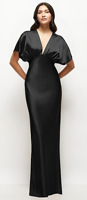 Plunge Neck Kimono Sleeve Satin Bias Maxi Dress in black