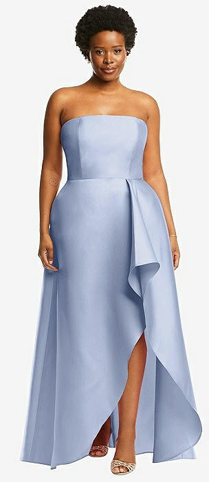 Strapless Satin Gown with Draped Front Slit and Pockets in sky blue