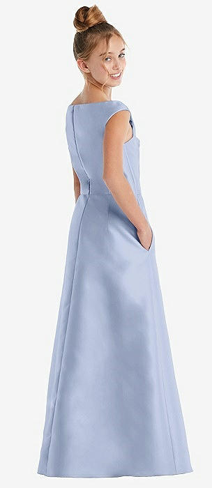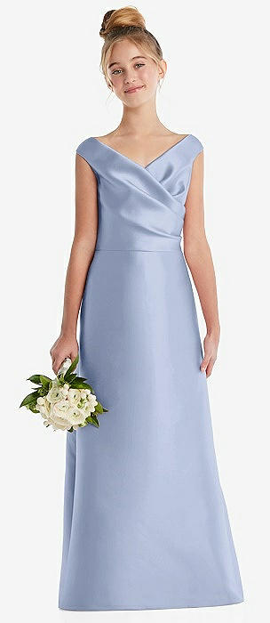 Off-the-Shoulder Draped Wrap Satin Junior Bridesmaid Dress in sky blue