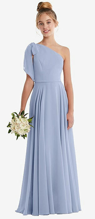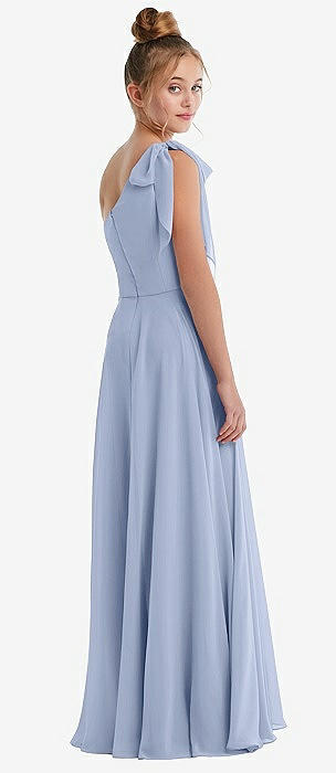 One-Shoulder Scarf Bow Chiffon Junior Bridesmaid Dress in sky blue