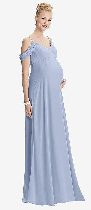 Draped Cold-Shoulder Chiffon Maternity Dress in sky blue