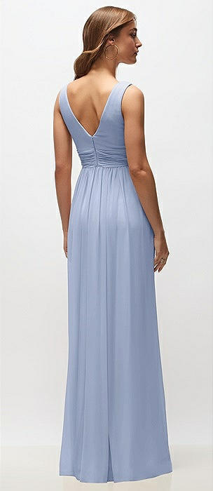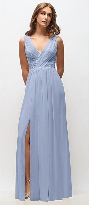 Sleeveless Draped Chiffon Maxi Dress with Front Slit in sky blue