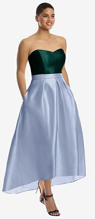 Strapless A-Line Stretch Satin Maxi Dress in cloudy