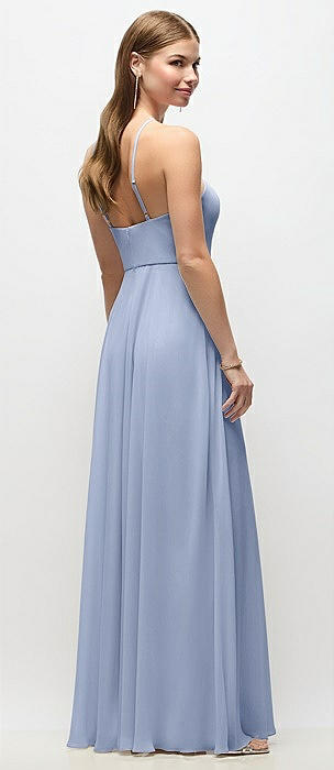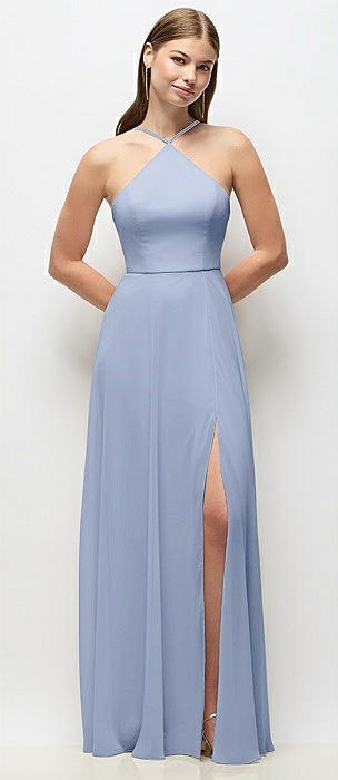 High-Neck Halter Chiffon Maxi Dress with Adjustable Spaghetti Straps