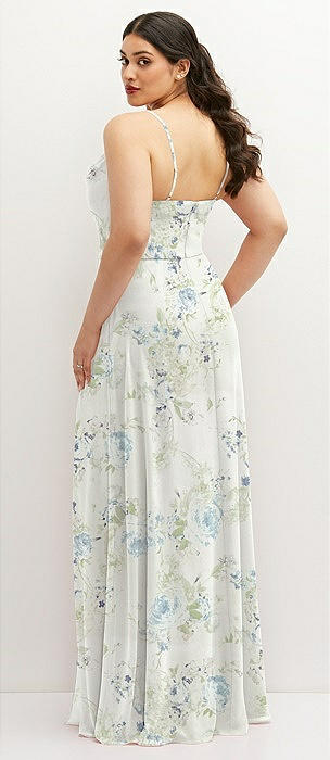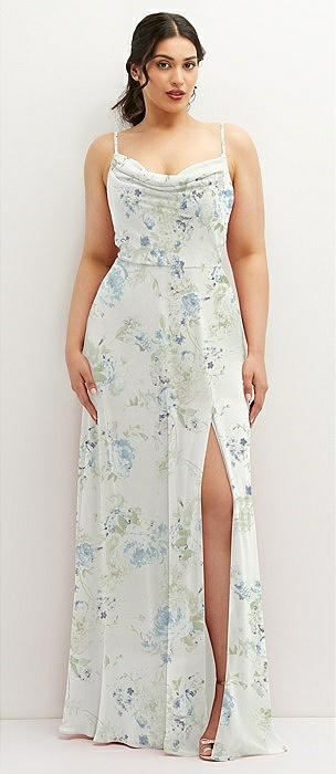 Soft Cowl-Neck A-Line Maxi Dress with Adjustable Straps in coquette floral print