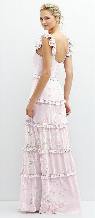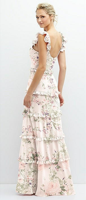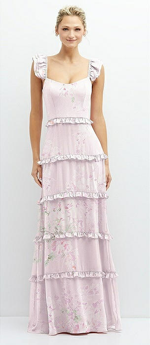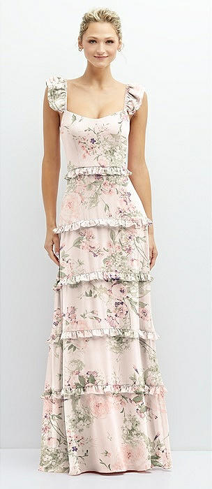 Tiered Chiffon Maxi A-line Dress with Convertible Ruffle Straps in blush garden