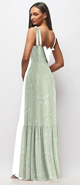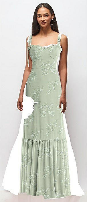 Tie-Shoulder Bustier Bodice Ruffle-Hem Maxi Dress in vintage primrose sage