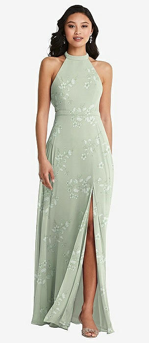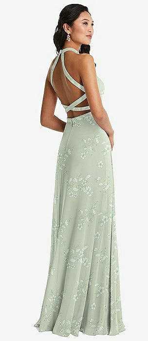 Stand Collar Halter Maxi Dress with Criss Cross Open-Back in vintage primrose sage