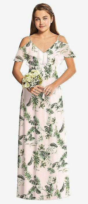 Dessy Collection Junior Bridesmaid Dress JR548 in palm beach print