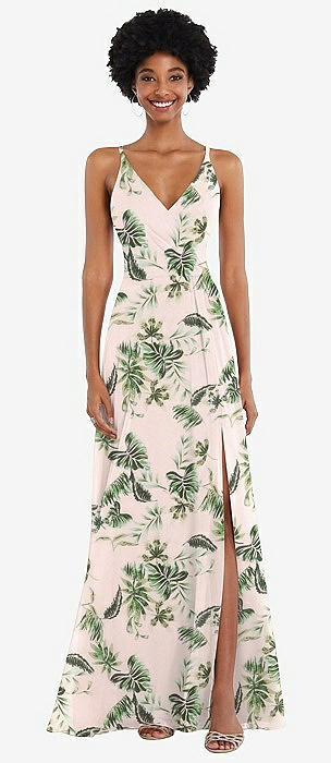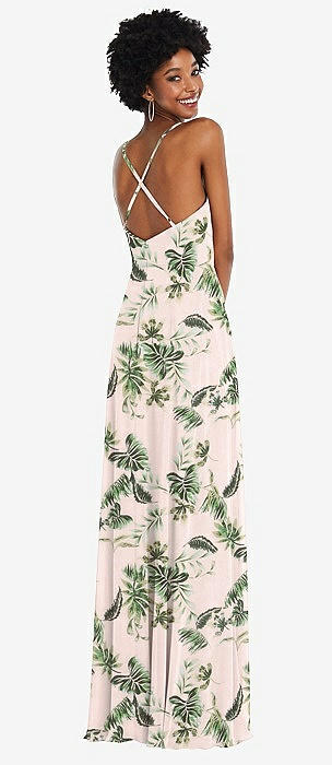 Faux Wrap Criss Cross Back Maxi Dress with Adjustable Straps in palm beach print