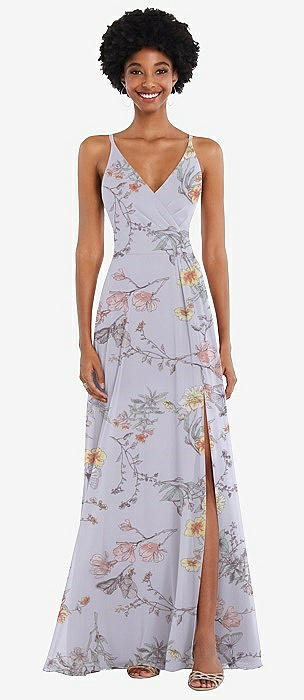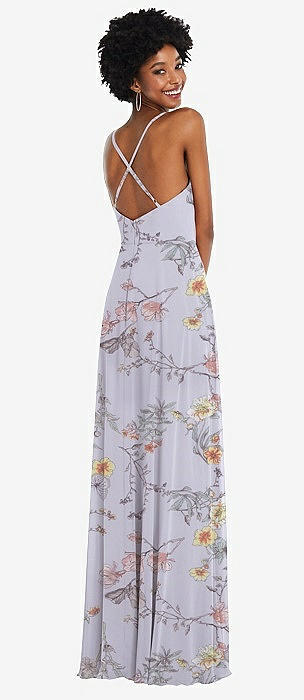 Faux Wrap Criss Cross Back Maxi Dress with Adjustable Straps in butterfly botanica silver dove
