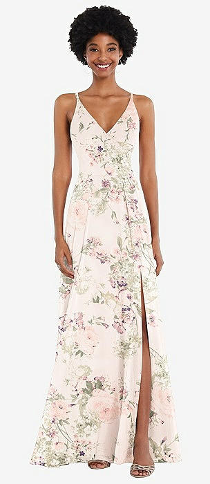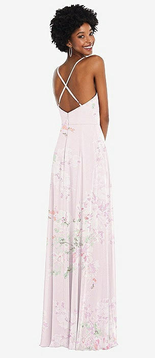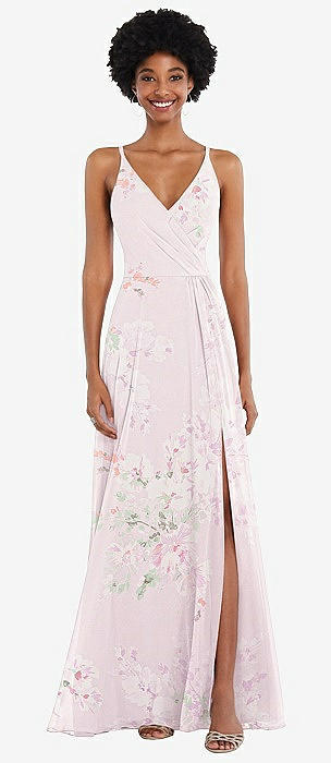 Faux Wrap Criss Cross Back Maxi Dress with Adjustable Straps in blush garden