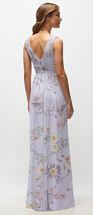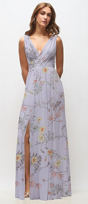 Sleeveless Draped Chiffon Maxi Dress with Front Slit in butterfly botanica silver dove