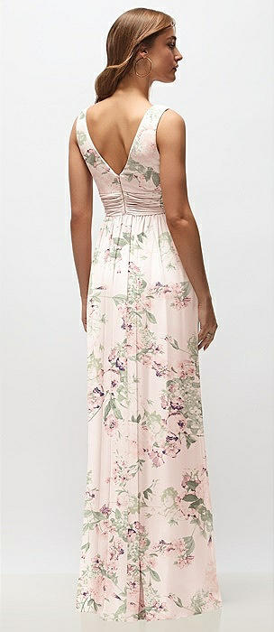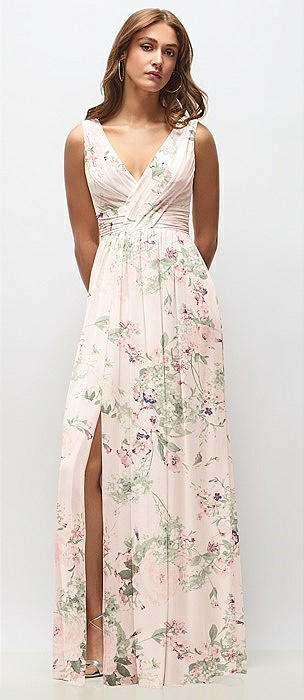 Sleeveless Draped Chiffon Maxi Dress with Front Slit in blush garden