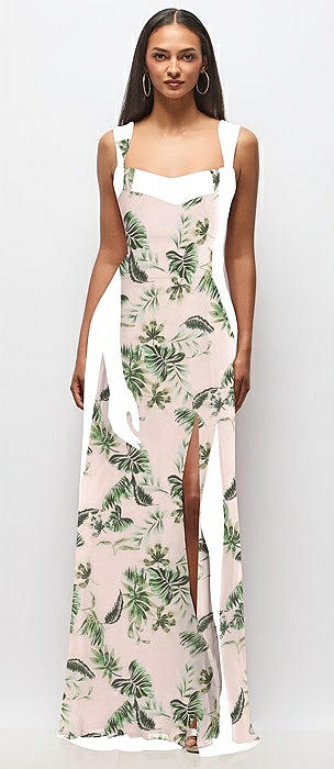 Contoured Wide Strap Sweetheart Maxi Dress in palm beach print