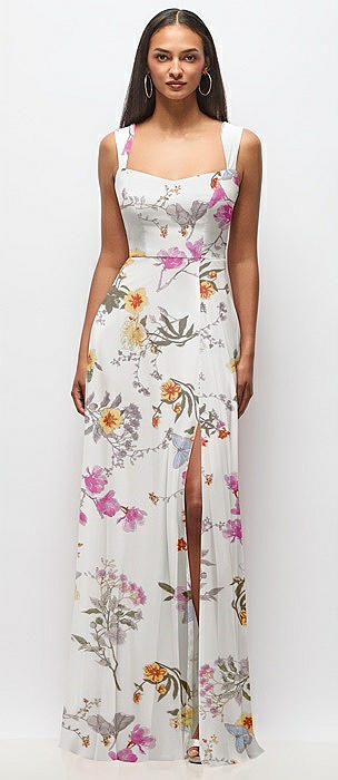Contoured Wide Strap Sweetheart Maxi Dress in butterfly botanica ivory