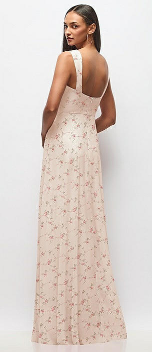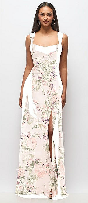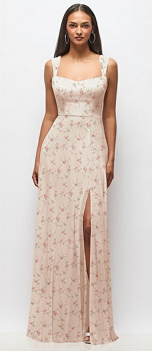 Contoured Wide Strap Sweetheart Maxi Dress in blush garden