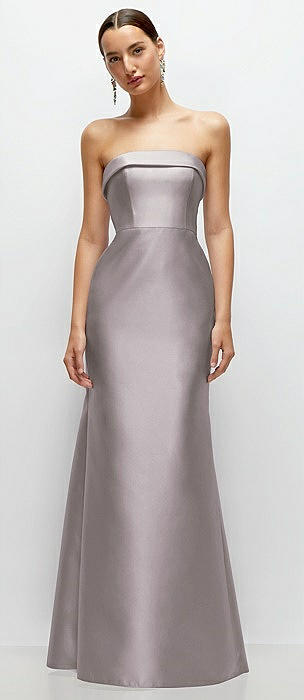 Strapless Cuff Neckline Satin Trumpet Gown in cashmere gray