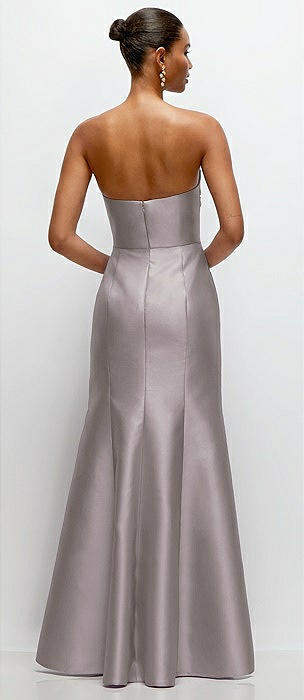 Strapless Satin Column Dress with Back Slit in cashmere gray