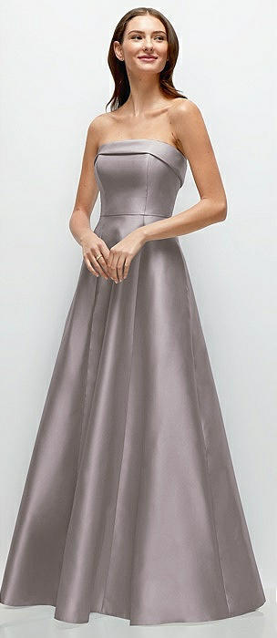 Bow Cuff Strapless Satin Ball Gown with Pockets in cashmere gray