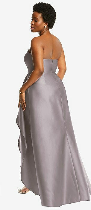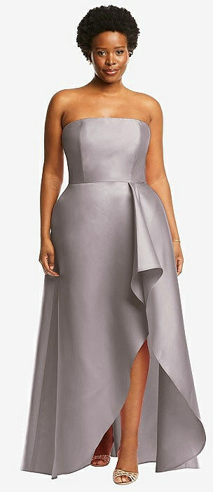 Strapless Satin Gown with Draped Front Slit and Pockets in cashmere gray