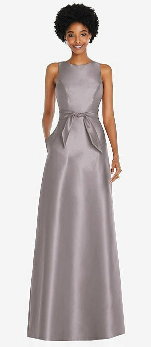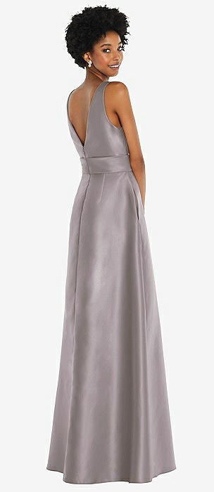 Sleeveless Square-Neck Princess Line Gown with Pockets in cashmere gray