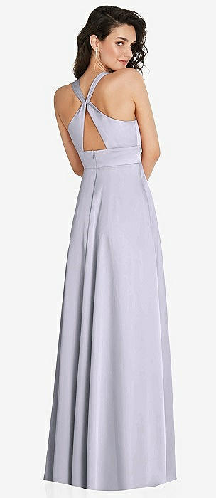 Stand Collar Cutout Tie Back Maxi Dress with Front Slit in silver dove