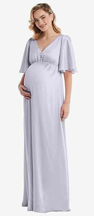 Flutter Bell Sleeve Empire Maternity Dress in silver dove