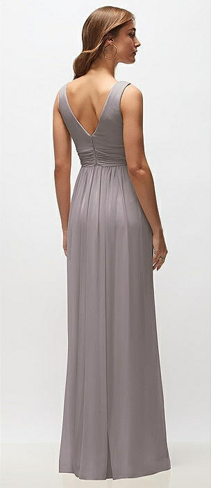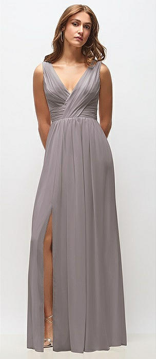Sleeveless Draped Chiffon Maxi Dress with Front Slit in cashmere gray