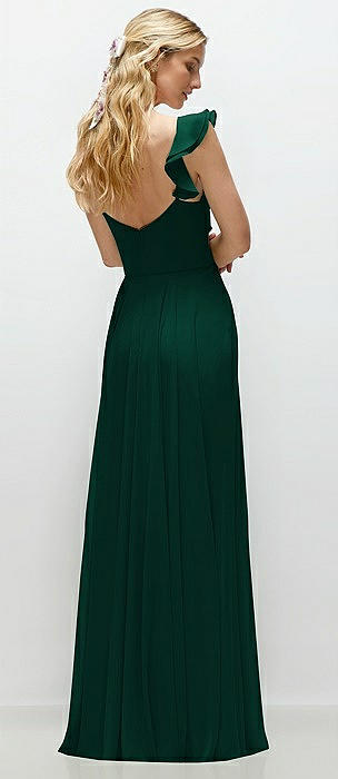 Dramatic Ruffle Edge Strap Chiffon Maxi Dress in hunter green