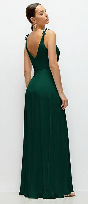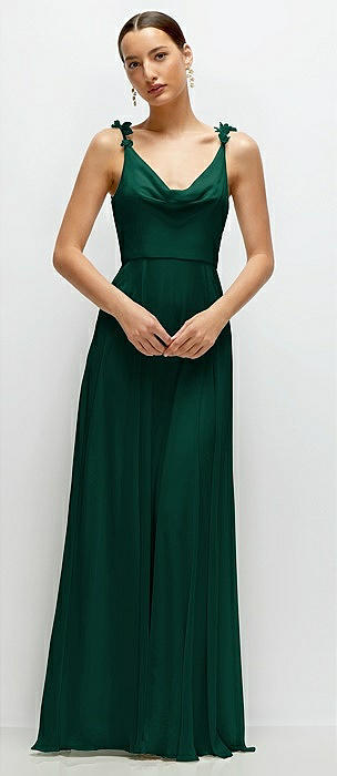 Cowl Neck Chiffon Maxi Dress with Hand-Worked Petal Straps in hunter green