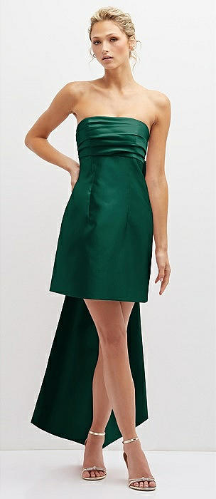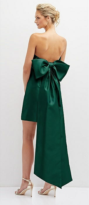 Strapless Satin Column Mini Dress with Oversized Bow in hunter green