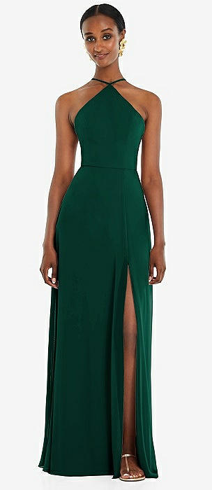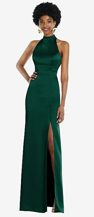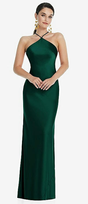 Scarf Tie High-Neck Halter Maxi Slip Dress in hunter green