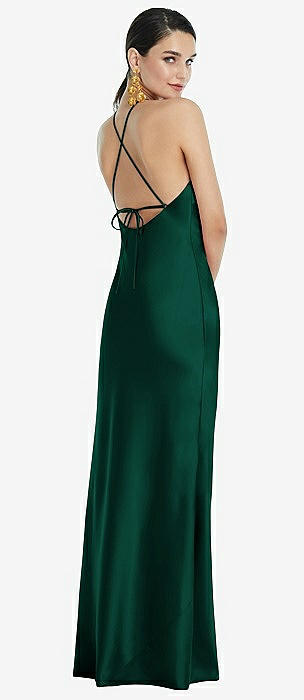 Diamond Halter Bias Maxi Slip Dress with Convertible Straps in hunter green