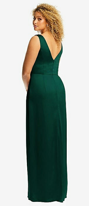 Draped Cowl-Back Princess Line Dress with Front Slit in hunter green