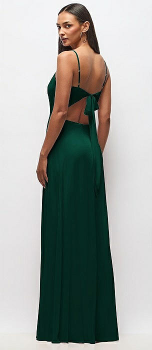 Cowl-Neck Criss Cross Back Slip Dress in hunter green