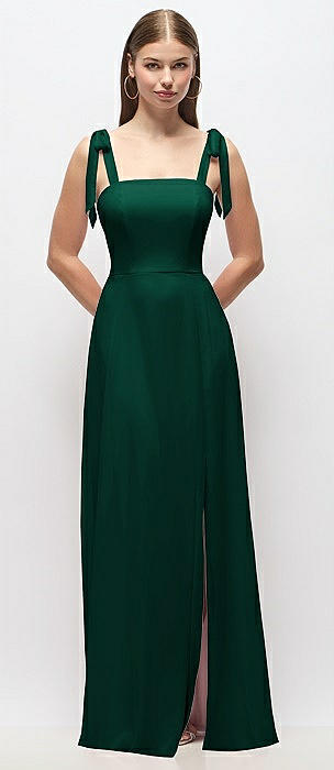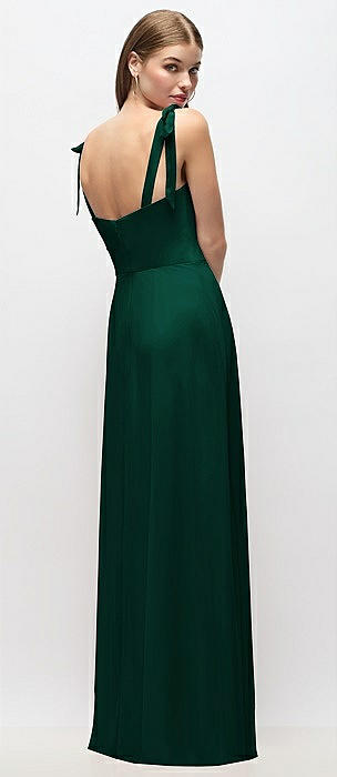 Tie-Shoulder Chiffon Maxi Dress with Front Slit in hunter green