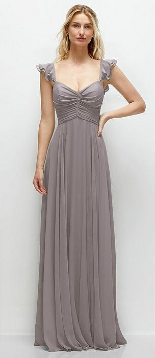 Ruffle Strap Chiffon Bustier Maxi Dress with Ruffle Hem A-Line Skirt in cashmere gray