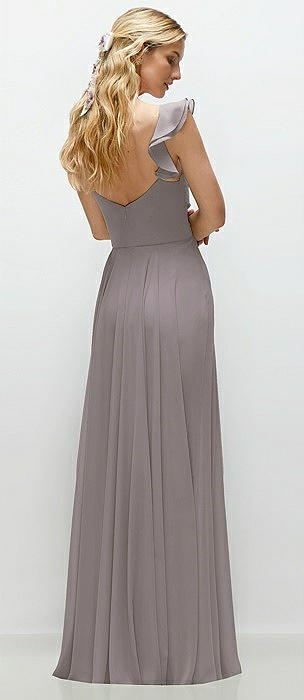 Convertible Ruffle Strap Chiffon Maxi Dress with Full Circle Skirt in cashmere gray