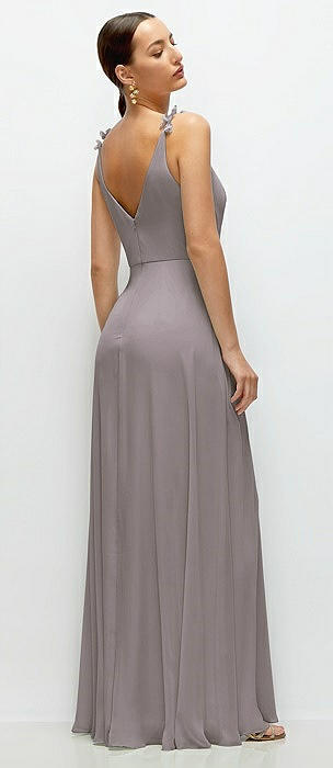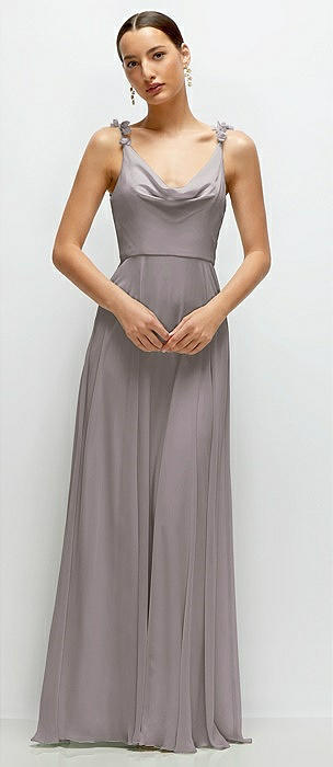 Cowl Neck Chiffon Maxi Dress with Hand-Worked Petal Straps in cashmere gray