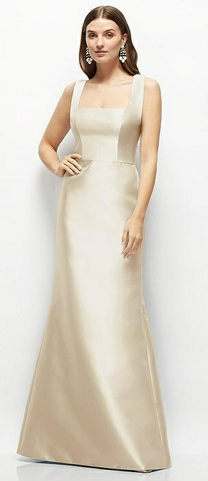 Square-Neck Satin Maxi Dress with Full Skirt in champagne