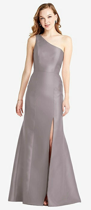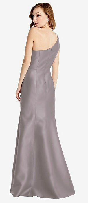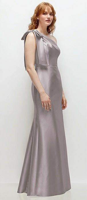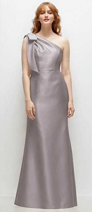Bow One-Shoulder Satin Trumpet Gown in cashmere gray
