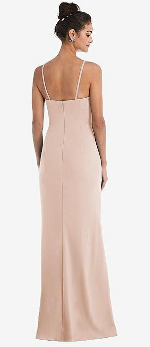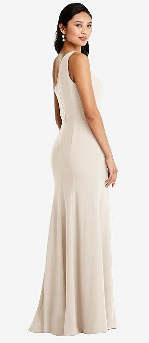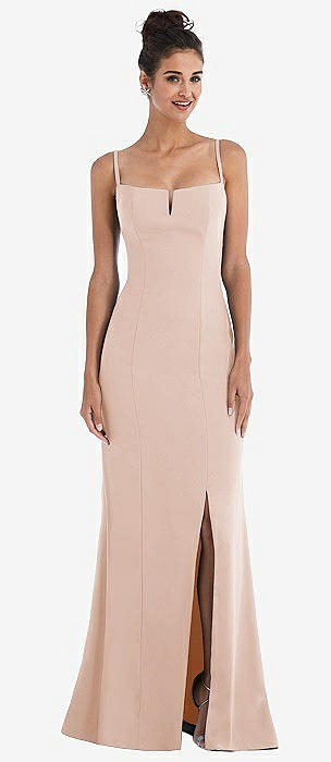 Notch Crepe Trumpet Gown with Front Slit in cameo