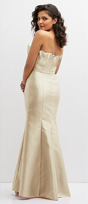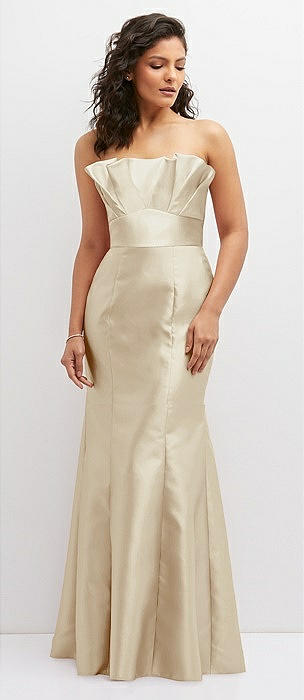 Strapless A-line Satin Gown with Modern Bow Detail in champagne