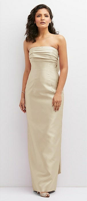 Strapless Draped Bodice Column Dress with Oversized Bow in champagne