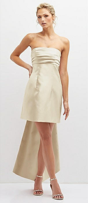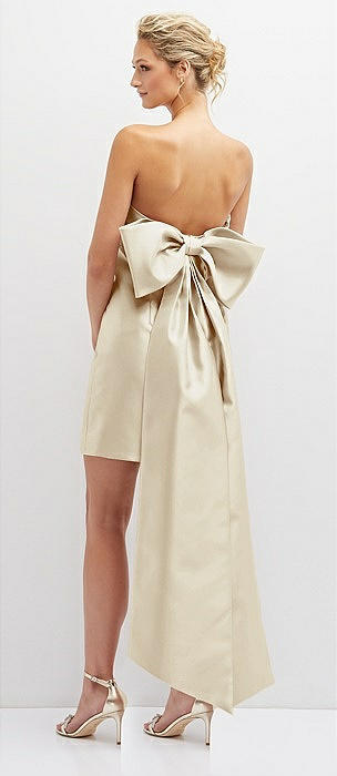 Strapless Satin Column Mini Dress with Oversized Bow in champagne