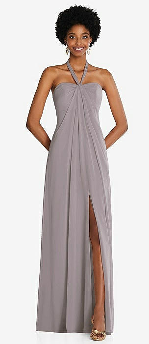 Draped Twist Halter Tie-Back Trumpet Gown in oat