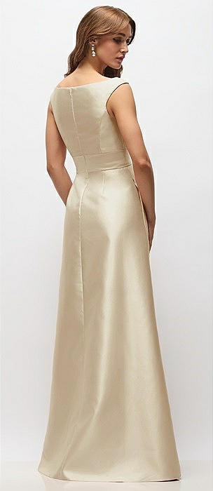 Strapless Notch Satin Gown with Pockets in champagne